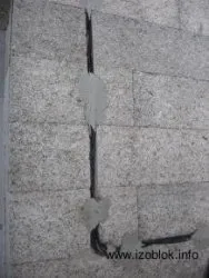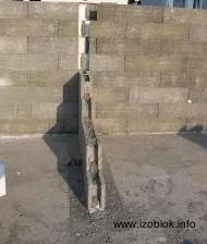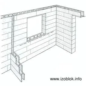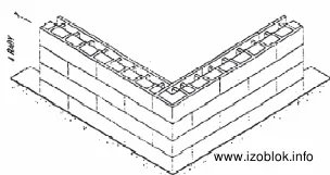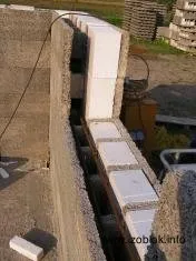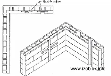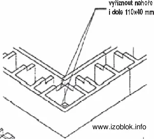 b) Vyříznutím vnitřní stěny tvárnice vnější zdi na šířku betonového jádra vnitřní zdi a přiložení vnitřní tvárnice ke tvárnici obvodové.