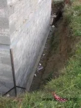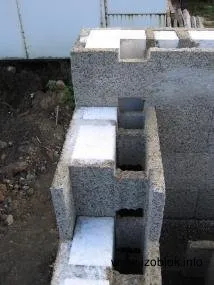 První vrstva tvárnic na základu nebo na stropu sklepa má být cca 150 mm nad přilehlým upraveným terénem a minimálně o 70 mm předsunuta z důvodu navázání izolace základu. Je-li zděno pod terénem, musí být provedena vodotěsná izolace vytažená min.150 mm nad upravený terén a kolem objektu se provede okapový chodníček se spádem od stěny.