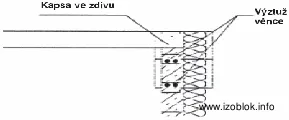 Při použití trámové stropní konstrukce ( ocelové a betonové nosníky či dřevěné trámy ) se do tvárnic vyříznou kapsy pro uložení trámů, které se před betonáží zdi vybední. Do betonu jádra tvárnic pod trámy se osadí výztuž obvodového věnce, která může být v místě kapes zesílena - určí projektant.